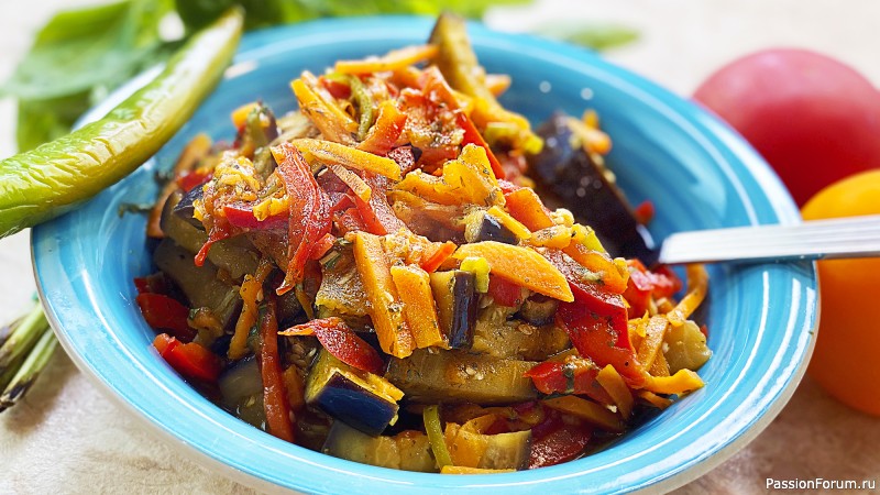 Ароматные баклажаны по-тайски. Овощное летнее рагу - вкусно, быстро, просто и полезно. Гости съели за 5 минут и просили добавки. Подходит для вегетарианцев. Сохраняйте себе рецепт в кулинарную книгу и делитесь со своими близкими. Этот рецепт нравится абсолютно всем. Ингредиенты: Баклажан (крупный) - 1 шт. Вода - 100 мл Соль - 1 щепотка Болгарский перец - 1 шт. Морковь - 1 шт. Перец острый чили - 1/2 шт. Оливковое масло - 1 ст.л Соль, смесь перцев - по вкусу Помидор (большой...