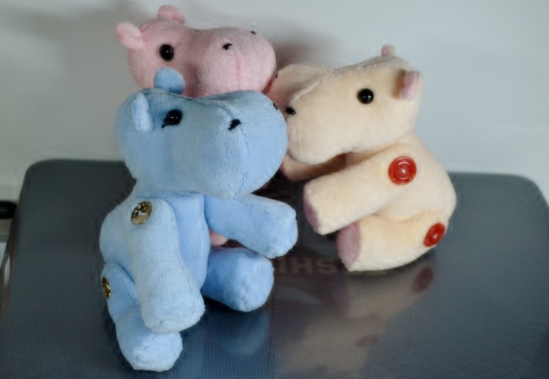Несмотря на мое новое увлечение куклами, плюшевые игрушки я не забыла . Мне очень нравится работать с плюшем, набивать игрушки, когда из кусочка ткани получается существо со своим характером, неповторимым обликом. Ведь даже по одной выкройке всегда получаются разные персонажи Хочу сегодня показать вам бегемотика и мишутку. Бегемотик набит холлофайбером, а мишутка опилками.