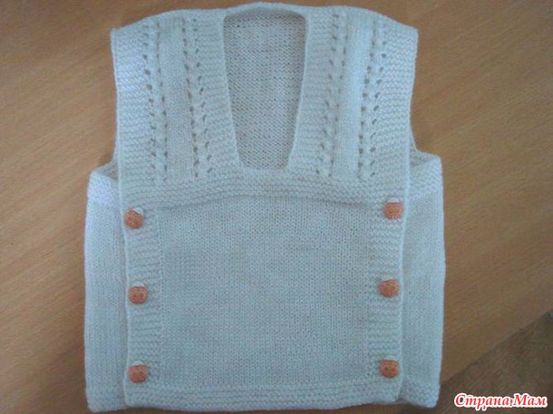 Очень удобная бесшовная безрукавка. Благодаря застежке, легко одевается. Вещь очень универсальная, подойдет как мальчикам, так и девочкам. Ниточки NAKO BAMBINO 25% шерсть, 75% акрил, 130 м, 50 гр (На безрукавку и носочки ушло ровно 150г). Спицы № 2,5. Плотность вязания 10*10 см - 22 петли, 31 ряд. ] И еще варианты: