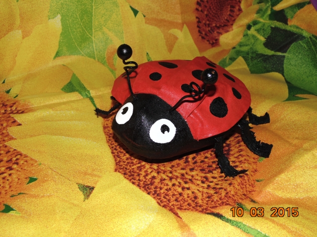 Всем,добрый день!!! В прошлом топике я показала несколько новых игрушек из фоамирана.Есть там божья коровка.Изначально я планировала на подставочке скомпоновать её с коробочкой -пироженкой.Но в процессе рассматривания фотографий поняла,что букашечка эта вполне самодостаточная барышня. Вчера я добавила ей пару аксессуаров и теперь ---Капа спешит на праздник.!Однако,терзают смутные сомненья,не переусердствовала ли я с зелёным цветом?Может подставку сделать более нейтрального оттенка?Как вам кажется? Может...