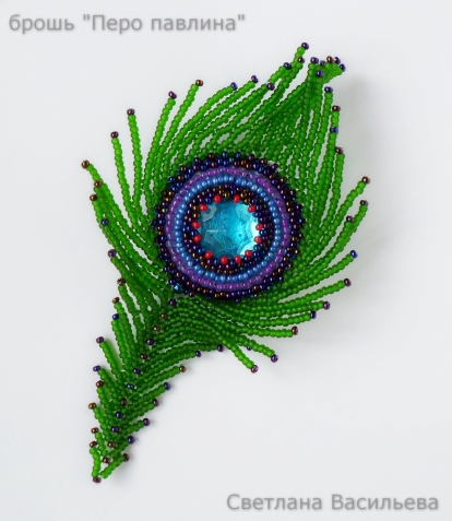 Брошь "Перо павлина",бисер Дорогие мои форумчаночки,здравствуйте!Хочу продемонстрировать,очередное творение.В пятницу ходила на День Рождение подруги.И вот вспомнила,что однажды,когда мы сней переписывались "В Контакте",на то время она жила далеко от меня,на Севере.Моя подруга прислала мне фото вот такой броши и написала ,что очень хочет такую-же.Ну вот села вечером после работы перед этим фото и начала плести.Хочу сказать,что у меня с первого раза ничего не получилось,а точнее мне не нравилось.П...