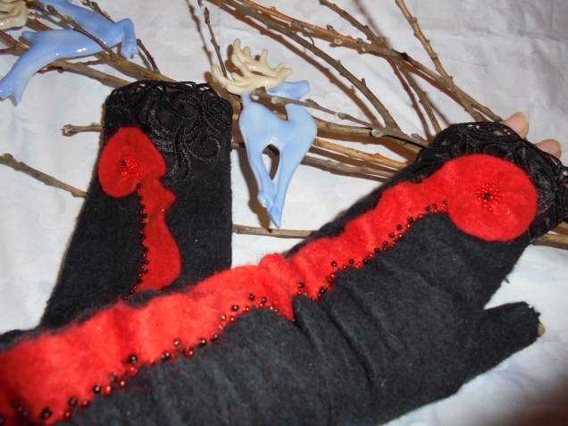 Начался год с небольших валяшек.У нас в городе была Новогодняя ярмарка,я амсала топик по этому поводу,но видисо его удалили,-нет его... На ярмарке продаж почти не было,но зато появились заказы и это радовало... Дама хотела купить шляпку,,но размерчик не подошел,но это не вопрос - растянула на другом болване.Зказчица довольна,ну инадо доплнить обрах...Шубка у нее с рукавами тричетверти,поэтому сваляла митенки.На верхнем фото..Все хорошо,но красного оказалось на даме много.Убр...