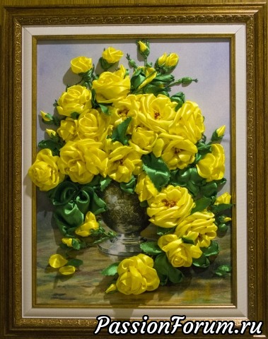 Уважаемые дамы и господа!!! Представляю Вам свою новую работу "Желтые розы", готовая работа вышивка лентами по принту. Размер принта 30х40, размер в раме 39х49.