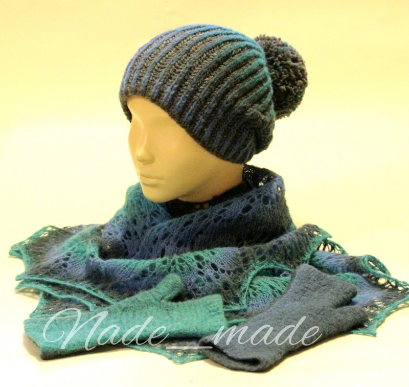 Добрый день, всем рукодельницам! Представляю вам комплект! Он составился из предметов, связанных в разных техниках. Объединила их всех пряжа Кауни цвета Аква. Остатки толстых ниточек 8\2 пошли на шапку. Докупила к ним моточек серого цвета. Спасибо Тамаре – получилась шапочка Бриошь, толстая и теплая. К шапке сделала большой помпон. Митенки были экспериментом. Поперечное вязание из ровницы и валяние в машине. Результат порадовал. Третий элемент в комплекте - это шаль Энгельна С, связанная в авантюре со ...