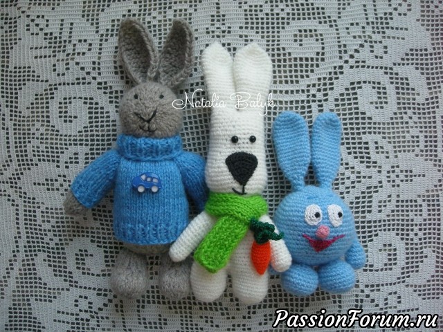 Добрый день, милые мастерицы! Вот такие мальчишки-зайчишки я связала для двух мальчуганов неполных двух и четырех лет. И, знаете, радует меня тот факт, что современные дети искренне радуются и таким игрушкам!
