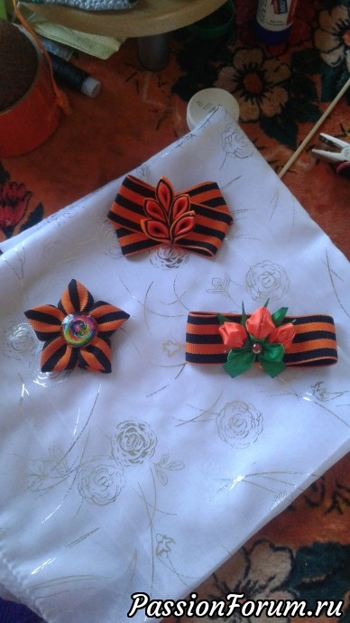 добрый день. Приближается праздник победы. Непременый атрибут этого праздника георгиевская лента.Я решила показать свои броши. Они не совсем традиционые поэтому мне очень важно мнение рукодельниц. Заранее спасибо за отзыв. Всех с наступающим праздником!!!