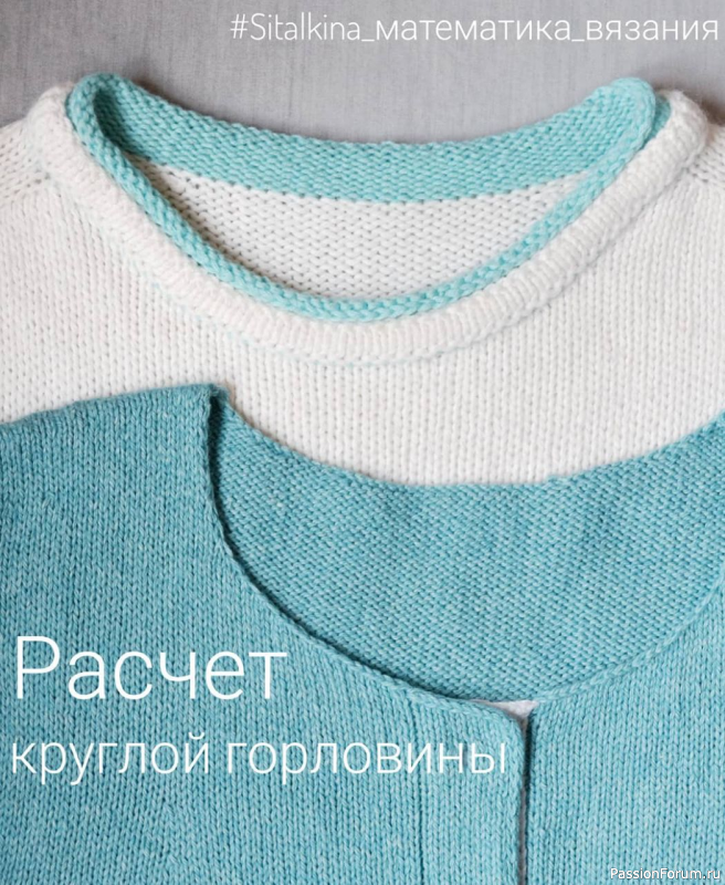 Текст автора Расчет круглой горловины. 💠 Данный расчет я использую и для вязания изделия с плечевыми швами, и для вязания погона. 💠 В данном расчете нет понятия "росток" и обхват горловины. Эти понятия я использовала для изделий, у которых нет выраженной плечевой линии, от которой можно отталкиваться при расчете Глубины горловины. 💠 Для расчета нам понадобится только наш обхват шеи, ширина планки (если она имеет место быть) и, собственно, задумка. 💠 Формулы ширины и глубины горловины определяют МИ...