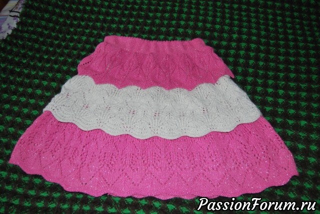 Девочки,помните в советские времена были модны кофты с люрексом? было у меня 2-белая и розовая.Распустила.Решила связать внучке платье с оборками.Но хватило только на юбку( надо было в 1 нитку вязать-получилась бы воздушнее). Впервые вязала оборки и вот что получилось.Модель категорически отказалась фотографироваться,но милостиво согласилась примерять))))