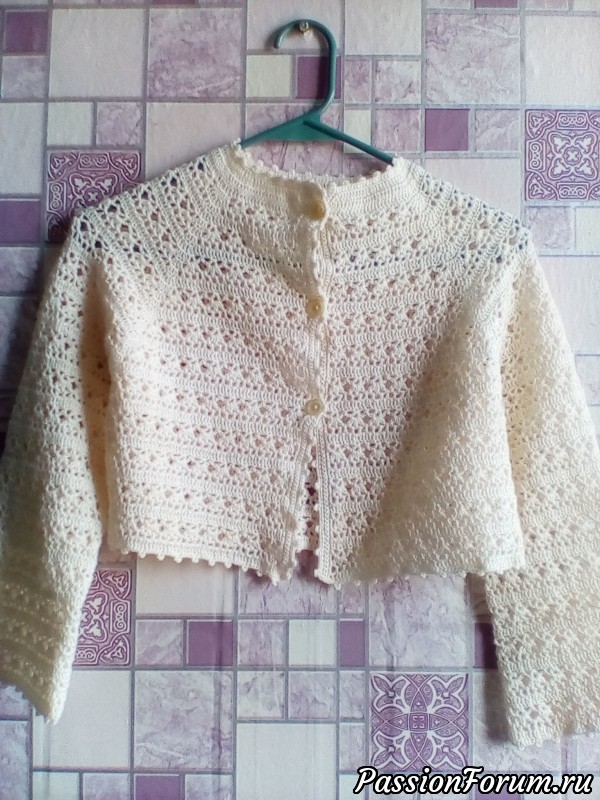 Продам болеро для девочки размер примерно 40. Связаное крючком из пряжи " Белорусская объемка", ширина кофты 40 см, длина кофты 34 см, длина рукава 55 см. Цена 500 рублей+ пересылка.