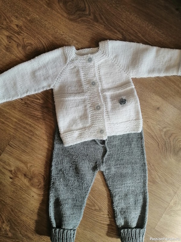 Вязаный костюм на ребёнка рост 86-88 см (1,5-2 года). Выполнен в благородном серо-белом цвете из гипоаллергенной полушерсти. Мягкий, нежный, невероятно уютный. Без швов. Ручная работа.