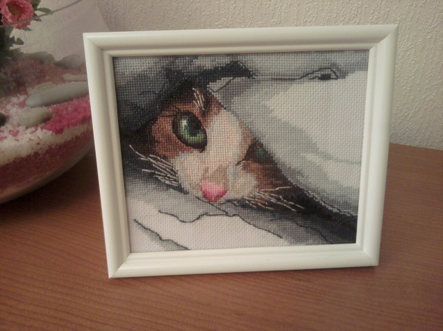 Доброго всем дня! Дед Мороз, т.е. баба Морозиха в моем лице :))) уже готовит мешок с подарками. Этого котейку вышила в подарок брату, любителю оных. Этот шалунишка уж очень похож на здравствуюшего кота Василия в молодости :))))