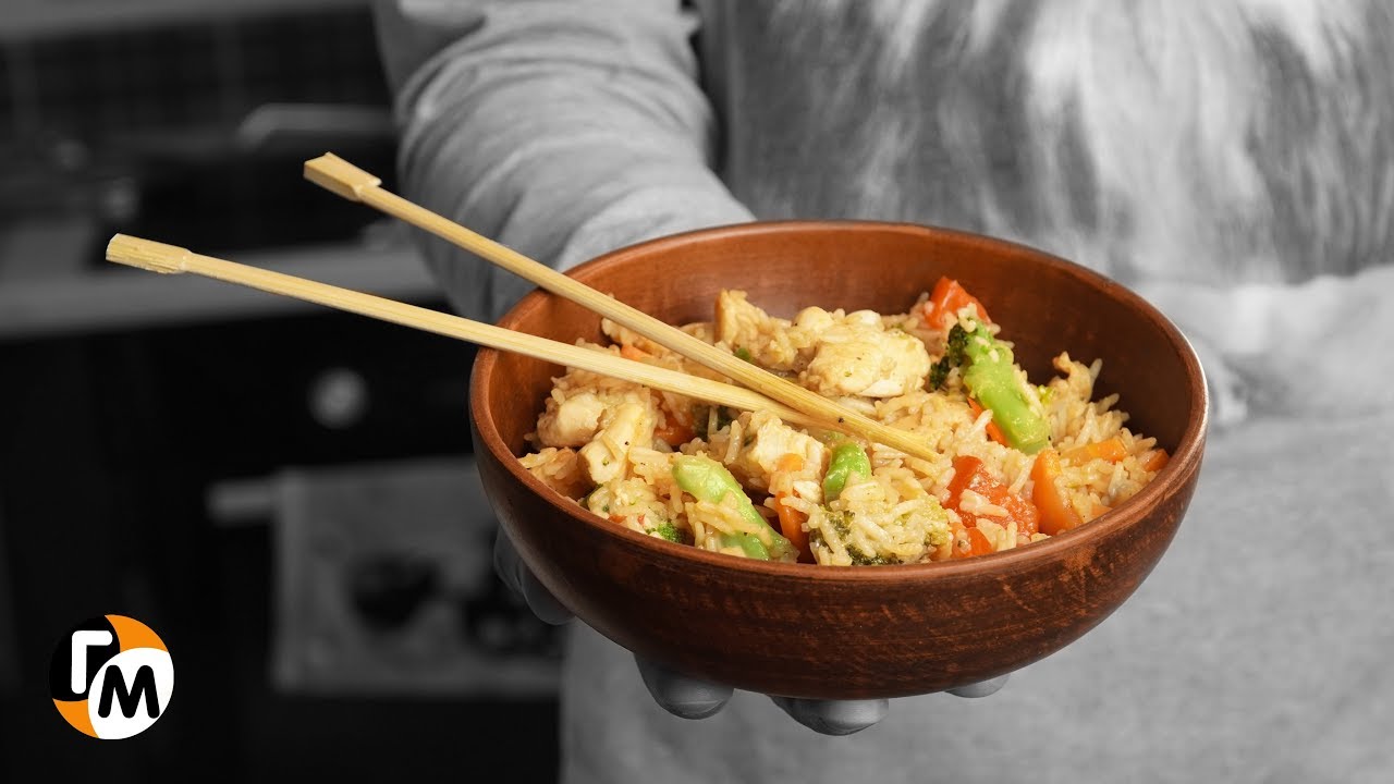 Привет! Сегодня Голодный Мужчина показывает и рассказывает как приготовить быстрый ужин — курица с овощами, рис и все это под сладко-острым соусом. Отличное блюдо в одной сковороде для всей семьи или компании гостей. ИНГРЕДИЕНТЫ: ⚫ Растительное масло - 1-3 ст. л. ⚫ Куриное филе - 2 штуки ⚫ СМЧП - 1 пакетик ⚫ Имбирь - 1 ст. л. ⚫ Чеснок - 3-4 зубчика ⚫ Рис - 200 грамм (1 стакан) ⚫ Вода - 2 стакана ⚫ Морковь - 1 штука ⚫ Паприка - 1 штука ⚫ Брокколи...