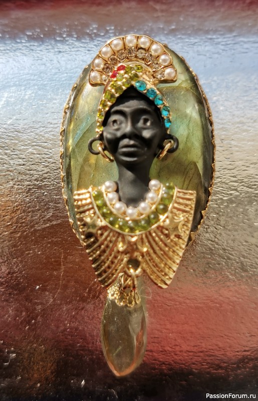 кулон на основе кабошона лабродарита, обрамлённый безделью из металла ювелирного сплава . Редкая иризация у камня ... Цена 3000 в единственном экземпляре .