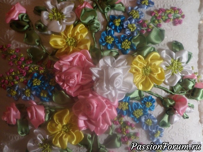 Не так давно , а именно вчера мы рассуждали с Натальей Редько о предрасположенности к той или иной гамме цвета в жизни. В какой-то период у меня была полоса ленточная.... Ну да, с того момента, когда я решила, что потолок будет вышит. Я купила немного лент- для начала, вечерок покрутила их так-сяк..Всё! Я всё умею!)))) И ринулась сразу вышивать. Так что подушки -это первые подопытные...