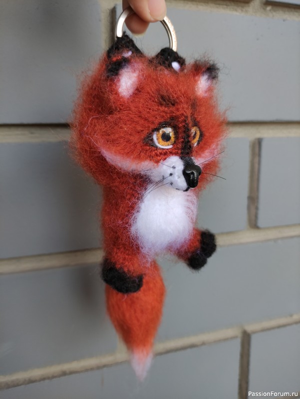 Очаровательный лисёнок, 12см+хвостик 9см. Можно использовать как брелок на сумку, подвеска на зеркало в авто...