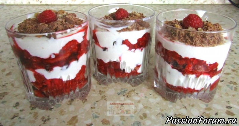 Творожно-шоколадный десерт с малиной