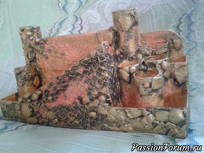 Доброго времени суток! Как и говорила, что влюбилась в Евгешины зАмки и башни, идеи понеслись наперебой. Конечно о повторении речи быть не может, у каждой свой почерк и стиль . А идея утилизации драгоценного хлама себя оправдала вполне. В ход пошли коробочки, картонки, рулончики, всякие дары моря, запчасти вышедших из употребления сумочек, сапожков, ремешков и т.д. Много-много клея ПВА, салфетки, кружева, остатки шпатлёвки и гипса, и многое другое, на что упад...