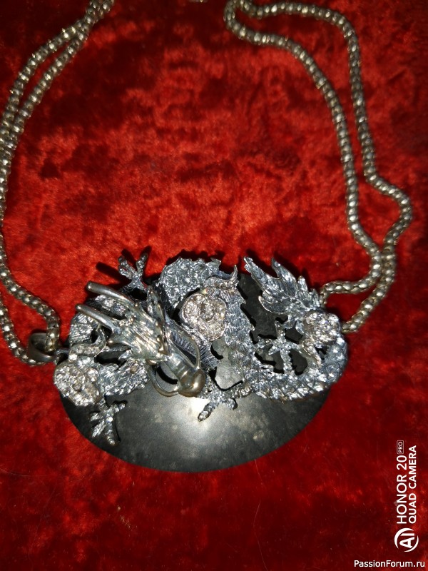 кулон на основе кабошона литствинита с объемной фигуркой дракона из металла ювелирного сплава, покрытого стразами. 5.400