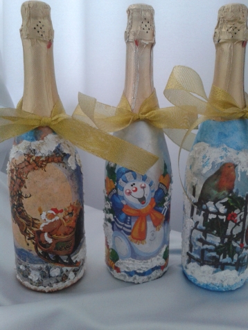 А это мои новогодние бутылки с шампанским Я тоже сделала бутылки с шампанским к новому году! Сразу пишу: блесток много, вообще все блестит, но на фото ничего не видно, а жаль)))) Замечания, предложения, как всегда, принимаются! Хорошего дня всем!