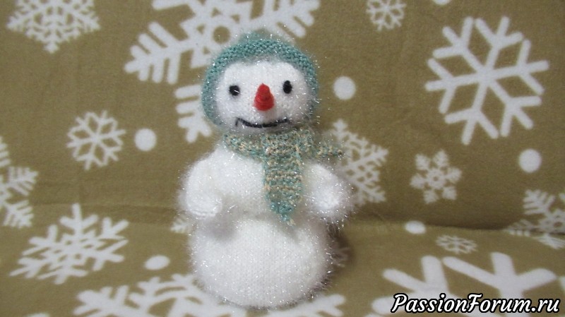 Добрый день, дорогие рукодельницы. Накануне очень желанного и веселого праздника Нового года, представляю Вам МК по вязанию спицами Снеговика. Так захотелось порадовать внучку и нитки подходящие давно ожидали своей очереди. Посмотрите, что получилось.
