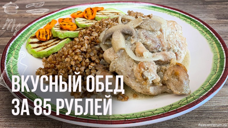 И так, сегодня я расскажу, как дёшево накормить семью вкусным, полезным и сбалансированным обедом. Примерно 85 р. за большую порцию. Рецепт на 6 порций: Гречка — 600 г. Филе куриное — 1000 г. Сметана — 4 ст.л Мука — 1 ст.л Лук — 2 шт. Грибы — 300 г. Кабачки — 1 шт. Морковь — 1 шт. Масло растительное — 50 мл. Соль — по вкусу Перец — по вкусу ПОДРОБНЫЙ ВИДЕО-РЕЦЕПТ: Пошаговое приготовление: Шаг 1 Гречку ...