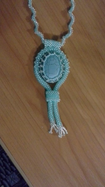 Дорогие рукодельницы, хочу показать вам мою последнюю работу - ожерелье из синего авантюрина. Ожерелье украшено замечательной резной бусиной из натурального хрусталя.
