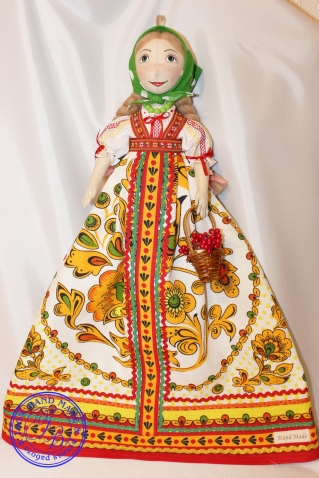 Дошила очередную пакетницу Настенька, старалась выполнить в народном стиле. Пробовала нарисовать ямки. Вроде получились. Волосики песочного цвета делала из 100% шерсти для валяния.