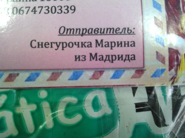 Предыстория такая: однажды, после обсуждения моей работы - вышивки петлёй подушки для Тёмы - Татьяна ( lazy ) отправила мне в подарок из Лондона набор (для вышивки в этой технике). При этом Татьяне сказали, что через 5-7 дней я получу пакет. Но ни через неделю, ни через три - так и не получила. И вот вчера - ура-ура! в почтовом ящике обнаружила извещение и поздравительную открытку. Я была уверена на 100%, что это то, что я жду. На извещении кроме моего адрес были только буквы: м/д, б/н - ...