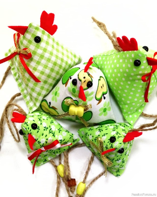 Для изготовления курочек Вам понадобится: ткань, синтепух, веревочка, бусины для глаз, лента.