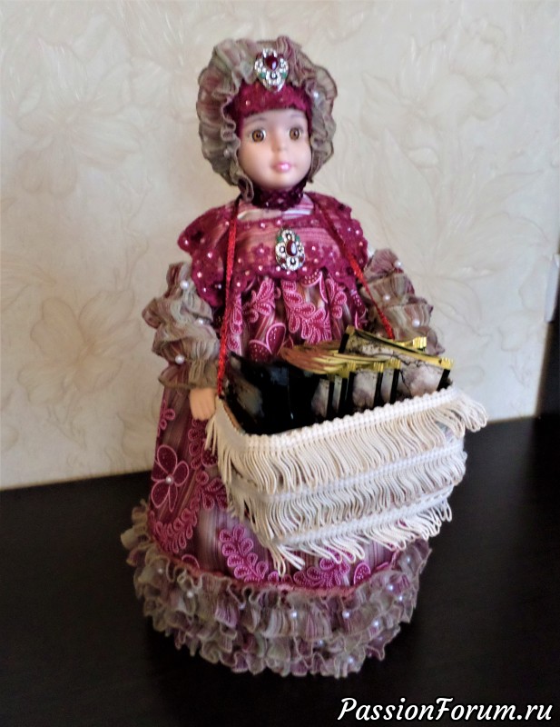 Чай с конфеткой, задушевный разговор. Кукла-коробейница украсит ваш интерьер. А на Пасху можно положить красивые яйца. Внутри картонная коробка в форме сердца. Высота 35 см. Подарок на Пасху и не только.