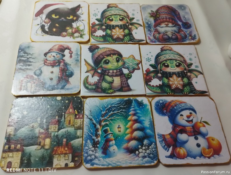 И снова к нам приходит Новый Год, и снова придумываем подарочки. В итоге сделали кучу подставочек под горячее с дракончиками и просто новогодней темой. Кое какие картинки пришлось подфотошопить, новый опыт. Много картинок сейчас от нейросети, есть очень классные, но всё равно надо немножко дорабатывать. Долго, общими усилиями подбирали пары картинок ведь все подставочки двухсторонние. И познакомились с новым материалом для себя - синельной проволокой. Долго искали мк чтобы сд...