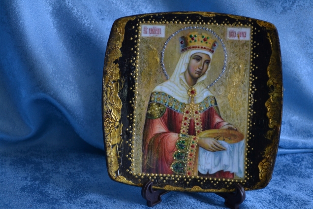 Икона святой равноапостольной царицы Елены. Чудодейственной иконе св Елены обычно молятся о излечении больных. Кроме того можно помолиться старинной иконе святой Елены равноапостольной царицы, если Вы испытываете материальные трудности и за здоровье близких. Прямой декупаж, роспись контурами, золотой фацетный лак, состаривание битумом. Освещена в церкви. Тарелочка " Розы" - учусь 2 - шаговому кракле. Ключница " Скрипка" - де купаж салфетки на текстурной пасте, трафарет, золотой ф...