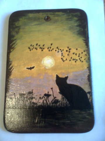 Добрый день всем! Несколько раз пыталась делать декупаж с распечаткой, но неудачно - не получалось истончить. Но на сей раз так понравилась картинка, что решила довести дело до конца (истончить опять не удалось). Границу пыталась закрасить, залачить, но все равно видно.