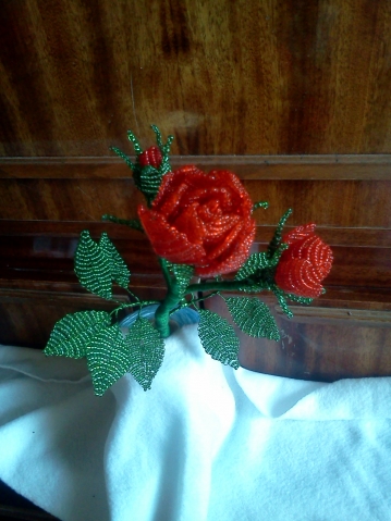 Предлагаю вашему вниманию свою конкурсную работу - розу из бисера. Для создания розы мне потребовалось: - бисер красного и зеленого цветов, - проволока 0,37мм тоже красного и зеленого цветов, - флор лента, - толстая проволока для стебля, - нитки для обмотки (у меня ирис) За основу взяла мастер класс с сайта Biserok.org Вот ссылка на него. biserok.org/rozovyie-rozyi/ Срединный лепесток выполнила ...