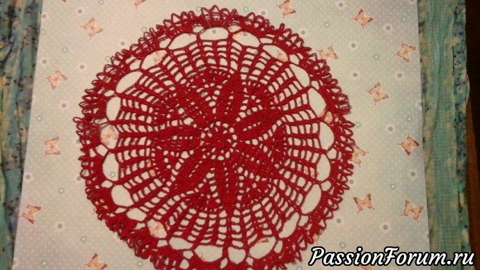 Сегодня второй день декабря, а в Воронеже дождь. Захотелось ярких красок и вот еще одна красная салфетка-Клюква! Диаметр 22см, нитки Кружевница, пнк им КИРОВА, мерсеризированный хлопок, крючок 1,5