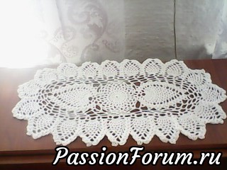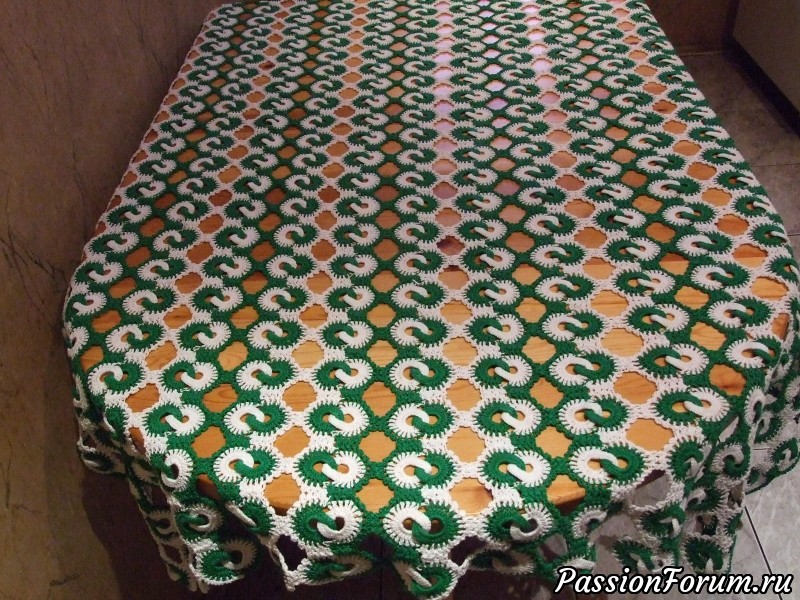 Скатерть связана из ниток "Пехоорка ажурная".Состоит из отдельных мотивов.Размер 140х100 см.
