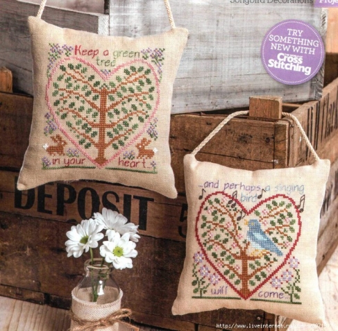Оригинальные схемы вышивки с сердечками, птичкой и цветочками.. Дорогие рукодельницы, хочу с вами поделиться красивыми схемами вышивки с сердечками. По-моему, эти схемы очень хорошо подходят для вышивки подушечек. Надеюсь, вам понравиться!