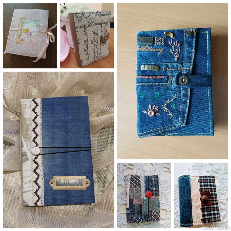 Доброго всем времени суток, дорогие форумчанки. Помните, вот здесь https://www.passionforum.ru/posts/117727-proshu-so... я просила совета куда и как применить вышивки. Отчитываюсь! С парочкой миниатюр решила сделать подвесы. Сразу поясню: делала подвесы из подручных материалов. Картон для оснований из различных упаковочных коробок. Блокнотики сделаны из одного блокнота на пружинке: разобрала, разрезала, собрала, склеила. Задники - мужнины рубашки и остатки обоев (да простят меня скраперы). Скрапбума...
