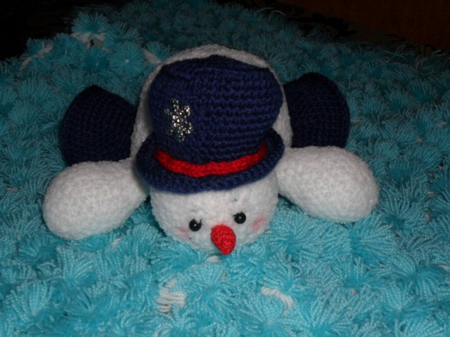И меня не обошла новогодняя тема. На свет появился милый малыш Снеговичок - малышок. Такая доверчивая милашка - просто чудо )). Ростом всего 20 сантиметров, но сколько теплоты и счастья он дарит когда держишь его в руках. Снеговик, Снеговичок, Ты, как гриб Боровичок, Крепенький и ладный, И такой нарядный!
