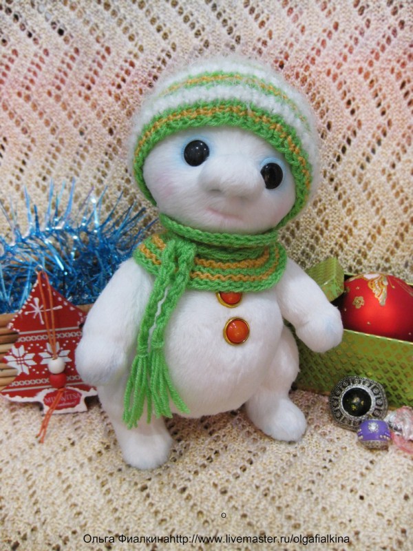 И меня не обошла новогодняя тема. На свет появился милый малыш Снеговичок - малышок. Такая доверчивая милашка - просто чудо )). Ростом всего 20 сантиметров, но сколько теплоты и счастья он дарит когда держишь его в руках. Снеговик, Снеговичок, Ты, как гриб Боровичок, Крепенький и ладный, И такой нарядный!