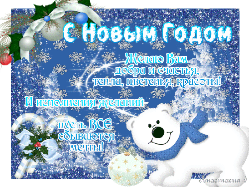 С НОВЫМ ГОДОМ, МОИ ДОРОГИЕ!!!!! Дорогие мои, поздравляю с Новым Годом! Жизнь наша идет, продолжается, так хочется, чтобы она была без бед, проблем, а только светлой и счастливой! Но мы и выпавшие нам испытания перенесем спокойно и стойко! Желаю всего-всего самого-самого хорошего, доброго и радостного, что есть на Земле и в этой жизни! Но у каждого человека есть желание заветное, вот его и напишите на этой открытке, загадайте под бой курантов и запейте шипучим шампанс...