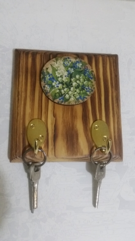 Сделала ключницы. Обжиг, брашировка, лессировка, Декупаж и тонирование. Столкнулась с проблемой крючков. Оказывается, у нас в городе нет выбора крючков, да и вообще фурнитуры. Два дня бегала по городу - искала. Нашла, конечно, не совсем то что нужно. Поэтому, решила больше не брать заказы, пока не подготовлю фурнитуру заранее.