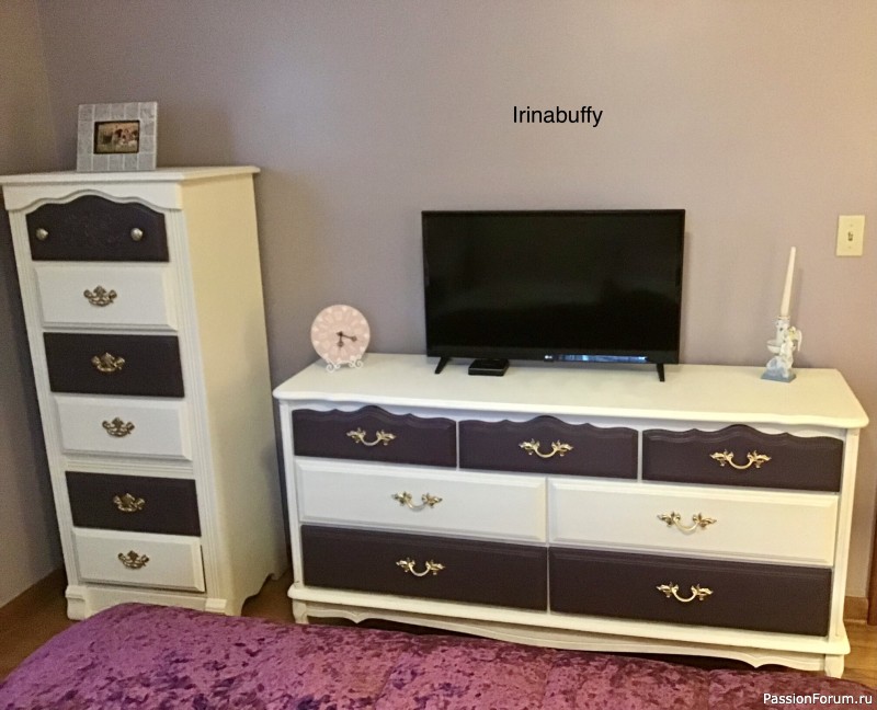 Всем добрый вечер!Продолжаю своё обновление мебели.Решила в спальне изменить остальную мебель, чтобы все было в одной гамме.Красила меловыми красками,ручки золотила из баллончика.Работать такими красками одно удовольствие.Комоды были поцарапаны,кое- где краска облупилась( пережили три переезда).Сейчас выглядят новыми и свежими. Как я уже писала купила за 15 дол три прекрасные консоли,натуральное дерево,лёгкие и в прекрасном состоянии.Единственный недостаток - грязные,отмывала с моющим сре...