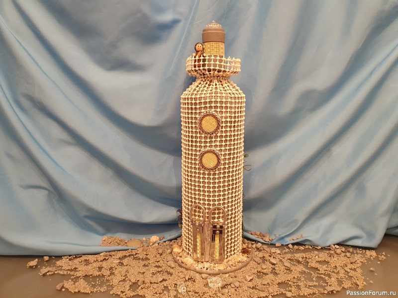 Приветствую всех, кто заглянул ко мне на страничку ! Попалась мне в руки опять большая бутыль. На этот раз " не залежалась" - сразу захотелось с ней пофантазировать. Вот и придумала- нето дом, нето башня... А если есть окно , кто-то должен из него выглядывать... Похоже, что там живут двое... Да, похоже, это принцессы ! Вот почему башня так украшена ! Надоело , видно, принцессам жить во дворце, вот и сбежали ... Теперь всё понятно, почему башня украшена драгоценными ка...