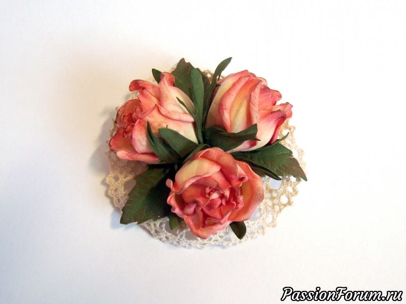 Веточка из роз " Артиссимо". Шелковая брошь или украшение в прическу.