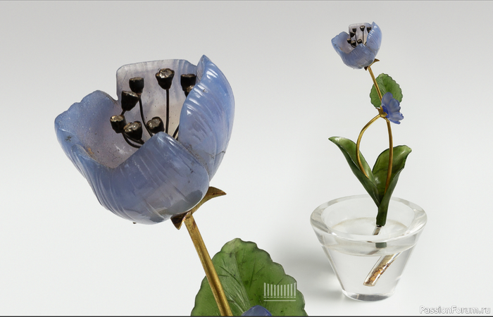 Красота и очарование камнерезных букетов, созданных фирмой Фаберже на рубеже XIX и ХХ веков настолько велика, что эти миниатюрные композиции вот уже более ста лет копируют камнерезы разных стран и народов. Эти маленькие шедевры продаются на сайтах уважаемых аукционных домов и приобретаются уважаемыми коллекционерами. В коллекции музея «Собрание» (Москва) можно увидеть много букетов «в стиле Фаберже». Зачастую специалисты не могут определить не только имя мастера, но даже и страну, где была сделана компози...