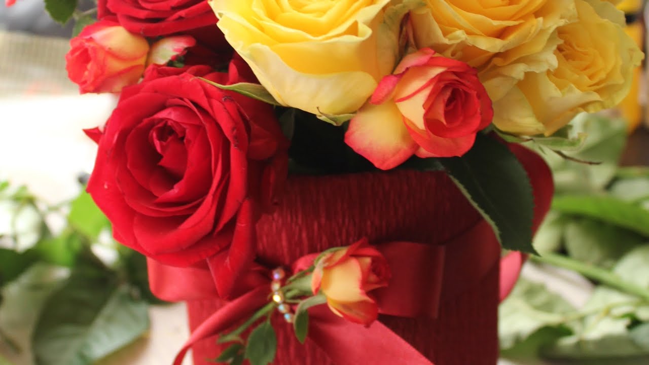 Здравствуйте! Это видео с идеей о создании Букета из живых цветов в шляпной коробке и о декоре самой коробочки. Я использовала: Розы, флористическую губку, прозрачную плёнку, круглую коробку, гофрированную бумагу, клей, атласную ленту, стразы на клеевой основе, нить.