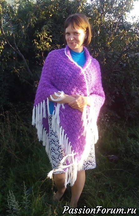 Всем доброго времени суток, уважаемые рукодельницы! Холода не за горами, поэтому приступила к утеплению. Правда, пока не себя. Связала теплую пелерину для соседки по кабинету. Чтобы, прям, со всех сторон ею обернуться и было тёпленько))) Нитки Ализе ангора голд, 80% акрил, 10% мохер, 10% шерсть, 550 м в 100 гр. Ушло 250 гр. Крючок 4. Спасибо, что заглянули!