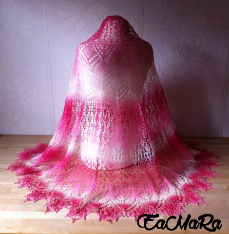 Оранжевым было лето, А розовой станет осень. Зима будет в зелень одета, Нежнейшую, будто озимь. Вы скажете, так не бывает? Готова не согласиться! Ведь пряжу сама выбираю, Вяжу себе сказку на спицах! Всем доброго времени суток. Предлагаю Вашему вниманию 3 новые шали. Связаны все из Кауни 8/1. После того,как я связала юбку по мотивам шали "Весеннее равноденствие",решила и шаль связать,получилось вот такое "Розовое чудо" очень внушительных размеров. Потом решила связать шаль по мотивам "Шер...