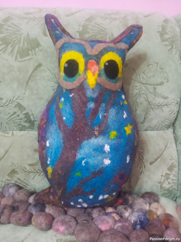 Приветствую всех заглянувших! Давненько я ничего не выкладывала. Сегодня хочу показать свою первую овечку, надеюсь, их будет еще хотя бы несколько, буду экспериментировать. Эта овечка сваляна на круглом шаблоне, голова на отдельном шаблоне, ноги вваляны внутрь, а голова пришита, внутри синтепон, глаза, розовые пятна на ушах набиты по сухому, чубчик тоже, только он из вязальной пряжи. Изначально я хотела брошку, но овечка получилась слишком большая, пока не знаю, куда её пристроить.
